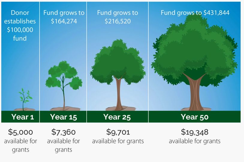 The above illustration is based on an 8.8% investment return with 5% used by the club in the form of grants and 1% used for administrative costs.